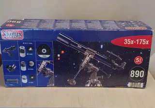 Telescopio astronómico Sky-Watcher con un aumento de 35x a 175x. - Modelo: 890 - Incluye montura y trípode. - Diseño compacto y portátil.