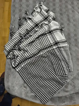 Pañuelo palestino tradicional con diseño a cuadros.Comprado y recuerdo de Túnez. - Patrón de cuadros blancos y negros. - Flecos en los bordes.