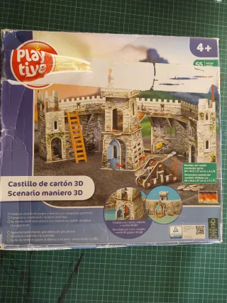 Castillo de cartón 3D de Playtive, ideal para pequeños guerreros. Fomenta la creatividad y la motricidad fina. - Montaje fácil con sistema encajable, sin tijeras ni pegamento. - Incluye 55 piezas. - Medidas aproximadas del castillo montado: 66 x 34,5 x 27 cm (L x A x P). - Fabricado en Alemania.