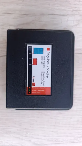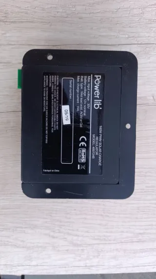 Regulador solar PWM de la marca Powerlib. Diseñado para baterías de 12V. Funcionando hasta hoy. Se vende por cambio al aumentar la instalación. - Capacidad de carga de 15A. - Soporta hasta 160W de potencia solar. - Voltaje máximo de entrada de 30V. - Indicadores LED para estado de carga y tensión solar.