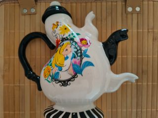 Preciosa tetera de Alicia en el País de las Maravillas. Ideal para los amantes del té y de Disney. ESPECIAL DECORACIÓN. - Tetera de cerámica con diseño de Alicia y el Gato de Cheshire. - Colores vibrantes y detalles cuidados. - Perfecta para regalar o para uso personal.