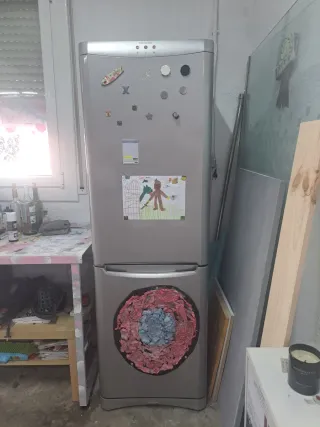 Frigorífico combi de inoxidable, con congelador en la parte inferior. Presenta un diseño moderno y funcional. - combi inox - Acabado exterior metálico. - Puertas con tiradores integrados.