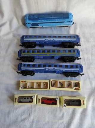 - Locomotora Paya 67000 SNCF. - Tres vagones Renfe. - Varios accesorios