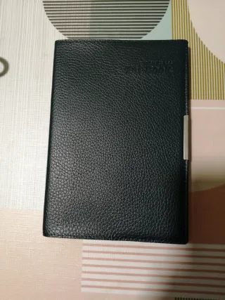directorio telefónico en color negro con acabado en piel. - Diseño elegante y texturizado. - Detalle metálico en el lateral.