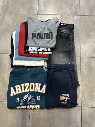Lote de ropa; -xandal talla +14 años 170-176cm -4 Camisetas manga larga 14años 182cm -camiseta gris puma 176cm -camiseta negra xs -Pantalon de regalo corto +14años 176cm Ropa està Como nueva , voy a dejar el pack muy rebajado todo 50,00 no acepto regateos, compra la ropa en la tienda!! (si necessitas envio por wallapop està en la cuenta wallapop de mi Hijo)
