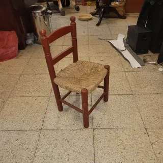 Esta silla pequeña tiene un diseño clásico y es ideal para espacios reducidos. - Estructura de madera. - Asiento tejido. - Color rojo. - Medidas en las fotos