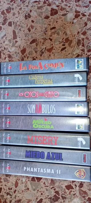 Colección de 8 películas de terror en formato VHS de la editorial Altaya. Stefen King - La Rosa Común - Cadena Perpetua - Los Ojos del Gato - Son Ambulos - Mitad Oscura - Misery - Miedo Azul - Phantasma II