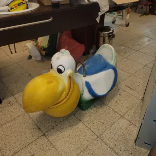 Divertido pelícano procedente de feria, ideal para que los más pequeños disfruten. - Diseño colorido con detalles en amarillo, blanco y azul. - Asas para sujetarse.