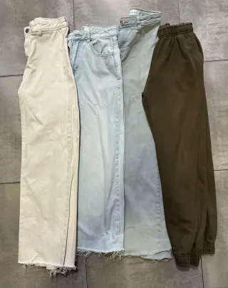 Pack de cuatro pantalones para niña de 13/14 años. -tejano lefties beig talla 34 -tejano azul celeste lefties talla 34 -tejano azul lefties talla 34 - jogger pullbear talla xxs todos por 25,00