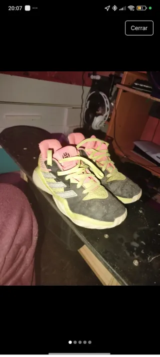 Zapatillas de baloncesto Adidas Harden Vol. 4 en color gris, rosa y amarillo. - Cierre de cordones. - Detalle de las 3 rayas de Adidas en los laterales. - Logo de James Harden en la lengüeta. - Talla:36