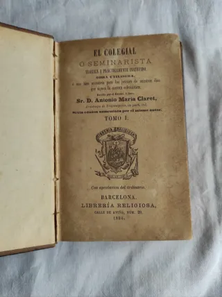 Conjunto de dos tomos de El Colegial Instruido de Claret. - Tomo 1 - Tomo 2 - Encuadernación en piel - Detalles dorados