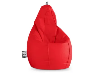 Puf grande con forma de pera en color rojo. Es un asiento cómodo y versátil. - Etiqueta de la marca SHAPERS visible.