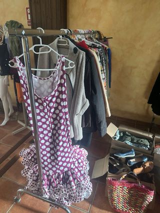 Se vende lote de prendas de vestir y burritos (percheros) para tienda. Ideal para montar o complementar un negocio. - Variedad de prendas de vestir, en un estado notable. - burritos metálicos para colgar la ropa, perchas ,etc. - Accesorios como bolsos , pañuelos y otros. *** ESTAMOS DISPUESTOS A PONER UN GRAN PRECIO PARA QUIEN QUIERA LLEVÁRSELO TODO ANTES DEL PRÓXIMO SABADO 27*** EL PRECIO POR TODO, teniendo en cuenta que hay entre 250-350 prendas + bolsos + pañuelos + 6 burritos variados + colgador de pañuelos y bufandas TODO POR 200€!!! (para el primero que llegue o bien para quien lo reserve)