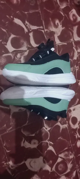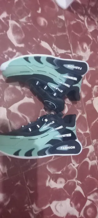 Zapatos deportivos con un diseño moderno y llamativo, perfectos para el día a día. - Combinación de colores negro y verde menta. - Detalle de texto FASHION en la suela. - Inscripciones STYLE, TRENDY y FOOTWEAR en los laterales.