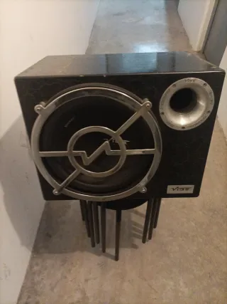 Altavoz Vibe de 12 pulgadas madera marina maciza y sesado completamente con etapa de potencia integrada.funciona perfectamente y un muy muy buen sonido mejor ver y probarlo - Potencia de 1300W. - Diseño elegante en color negro.y destellos blancon - Incluye puerto bass reflex.