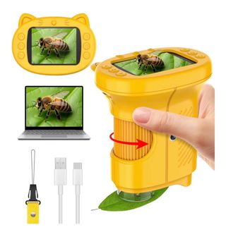 Microscopio digital portátil de bolsillo, ideal para niños y niñas. Compatible con PC. - Marca: GlobalCrown - Aumento: 200x - Edad recomendada: 3-12 años - Incluye: Microscopio, cable de conexión a PC