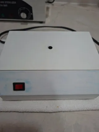 Esterelizador Apto para esterilización de materiales de uñas en general. Lo he utilizado bien pero me queda pequeño. Funciona perfectamente. Marcas de uso.