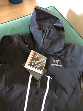 Chaqueta negra de la marca Arc'teryx con tecnología Gore-Tex. - Cremalleras impermeables. - Capucha ajustable. - Puños con velcro.