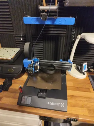 Impresora 3D Artillery Genius en color azul y negro. La impresora funciona oero requiere de sustitución de Cable y ajuste. Incluye varias boquillas, cables, bltouch, y varios accesorios mas. La vendo por poco uso, y poco tiempo para repararla. - Plataforma de impresión. - Marco de aluminio. - Pantalla táctil.