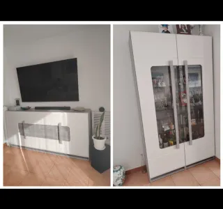 Mueble de comedor moderno con un diseño elegante. - Acabado en blanco y detalles en gris. - Amplio espacio de almacenamiento.