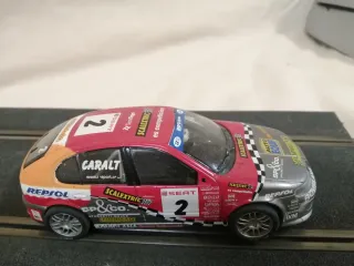 Coche de slot Scalextric Seat Leon Caralt con el dorsal número 2. Modelo de competición. Para restaurar o Desguace. No envio. Entrega en mano. - Réplica detallada del Seat Leon. - Decoración Caralt y Repsol. - Incluye patrocinadores como Grundig, Autocolor, Recaro, Sparco y Formula Q.