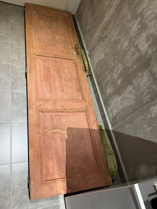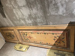 Puerta antigua con una hermosa pintura artística decorativa. - Diseño floral y ornamental. - Tonos ocres y detalles en rojo, verde y azul. - Medidas: 22,5 cm de ancho, 66 cm de alto y 4,5 cm de grosor.