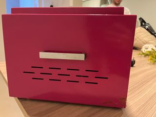 Este fundidor de cera tiene un llamativo color fucsia y un diseño moderno. - Asa metálica. - Rejillas de ventilación.