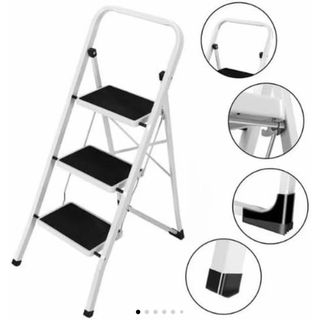 Escalera plegable de 3 peldaños, ideal para tener en casa y ahorrar espacio. - Estructura metálica blanca. - Peldaños con superficie antideslizante negra. - Diseño cuadrado y compacto. Escala escalonada plegable cuadrada ahorra espacio con peldaños antideslizantes y barandilla de seguridad, banqueta, estructura de acero y revestimiento de goma, carga máxima 150 kg