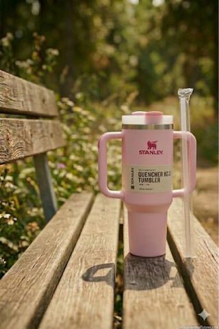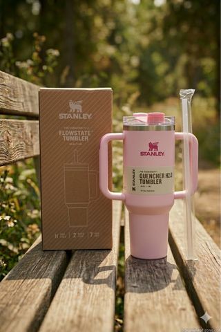 Vaso Stanley Quencher H2.0 en color rosa, con su caja original. - Modelo: Flowstate Tumbler. - Capacidad: 40 oz / 1.18 L. - Incluye tapa y pajita reutilizable. - Mantiene las bebidas frías por 48 horas y calientes por 7 horas.