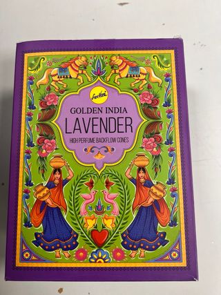 Caja de conos de incienso Golden India con aroma a lavanda. Perfectos para crear un ambiente relajante. - Aroma: Lavanda - Tipo: Conos de reflujo - Marca: Golden India