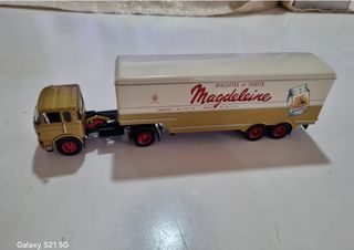 Preciosa maqueta de camión Willeme LC610 de la marca Altaya, a escala 1:43. Se trata de una reproducción detallada de un camión articulado. - Escala 1:43. - Marca Altaya. - Modelo Willeme LC610. - Incluye remolque. - Color rojo y detalles en amarillo y verde.