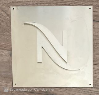 Características: Material: metal Medidas: 20 × 20 cm Logotipo Nespresso en relieve Con agujeros en las 4 esquinas para una fácil instalación Parte trasera con tornillos originales de fijación del logo Decoración de cafeterías Zona coffee corner Coleccionistas de artículos Nespresso Restauración y comercios