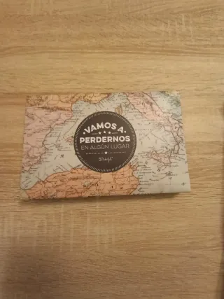 Álbum de viajes de Mr. Wonderful con un diseño inspirado en mapas. - Portada con mapa del mundo. - Diseño Vamos a perdernos en algún lugar.