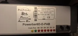 Regleta de alimentación Profilux Powerbar 6D-D-PAB. - Voltaje: 230VAC 50Hz. - Máx. 2300VA por canal. - Máx. 3600VA total. - 6 tomas T10A (S1-S6). - Indicadores LED: Com Pwr, S6, S5, S4, S3, S2, S1. - Conexiones: 2x RJ45.