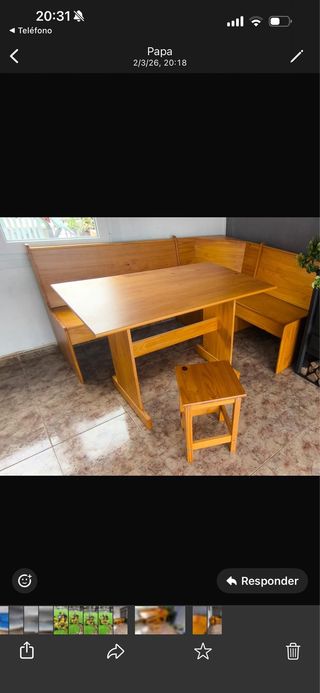 Conjunto de mesa y rinconera de madera para comedor o cocina. Ideal para aprovechar el espacio. - Rinconera de madera con banco. - Mesa de madera a juego.
