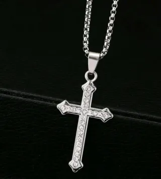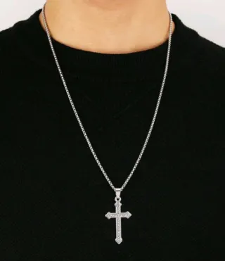 Elegante cadena con un colgante de cruz de estilo gótico. - Diseño detallado y ornamentado.