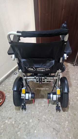 Silla de ruedas eléctrica plegable de la marca Medical Mobility. Se encuentra prácticamente nueva. - Diseño plegable para facilitar su transporte y almacenamiento. - Estructura robusta y cómoda. - Ruedas traseras grandes y ruedas delanteras giratorias.