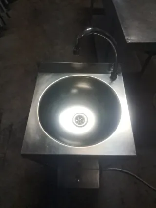 Lavamano de acero inoxidable, ideal para cocinas o negocios.