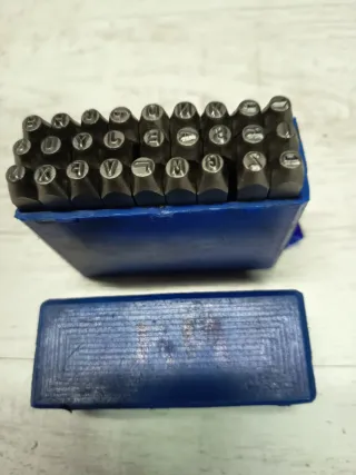 Set de punzones para grabar letras y números - 3 mm las letras -6 mm los números - Incluye alfabeto completo. - Incluye números del 0 al 9. - Estuche organizador azul.