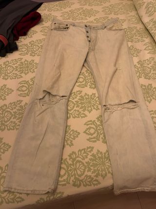Pantalón vaquero Levi's con un estilo desgastado y moderno. Perfecto para un look casual. - Diseño con rotos en las rodillas. - Tono claro de lavado. - Cierre de botones. comprados en Estados Unidos desgastados por mi talla 32