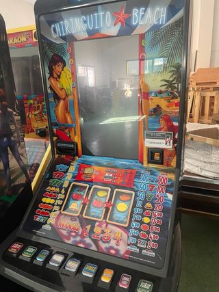 Máquina tragaperras GiGames modelo Chiringuito Beach. mando vídeo funcionando - Pantalla principal con gráficos. - Panel de control con botones.