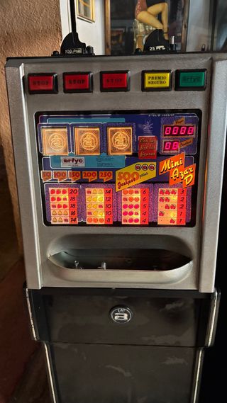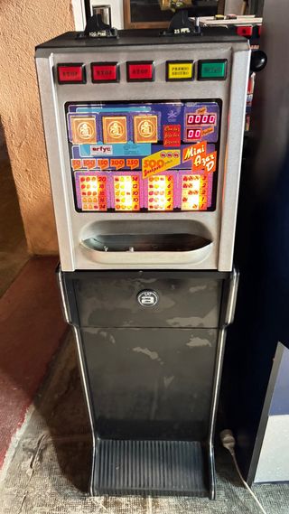 Se venden repuestos de una máquina tragaperras antigua. La máquina está en buen estado, aunque muestra señales de uso. consultar precios - Incluye la parte frontal con botones y pantalla. - También se incluye la estructura de madera de la máquina.