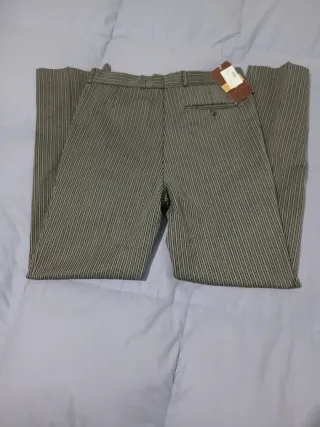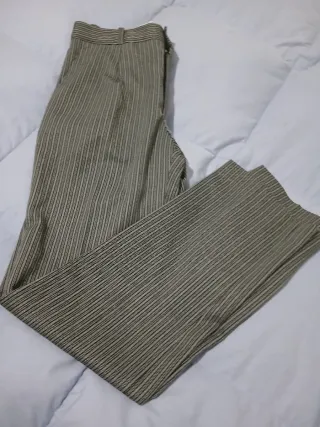 Pantalón de estilo rociero con un diseño de rayas verticales. La tela presenta una textura sutil que le da un toque distintivo. - Diseño de rayas. - Tejido con textura.