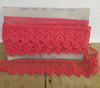〽️ Punta de encaje en color buganvilla (4 cm de ancho) -Metros sueltos: 1.90 €/m +Pieza entera ( 5.62 metros) a mitad de precio, 5.33€‼️ -Sale el metro a 0.95 céntimos 💥 #encajes #encajesypuntillas #encajedebolillos #trajesregionales #costuraartesanal #costuracreativa #costuraylabores #costura #trajesdeflamenca #flamencastyle #flamencasyvolantes #creatutrajedeflamenca