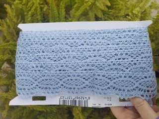 🪡 Pasacintas de encaje color celeste (4,5 cm de ancho) -Metros sueltos: 1,65€/m -Pieza entera (26.93 metros) a mitad de precio, 22.20€‼️ -Sale el metro a 0.82 céntimos€ 💥 encajes #encajesypuntillas #encajedebolillos #trajesregionales#costuraartesanal #costuracreativa #costuraylabores#costura #trajesdeflamenca #flamencas