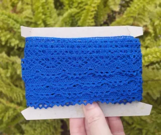 〽️ Punta de encaje en azul añil (3,5 cm de ancho) -Metros sueltos: 1,65 €/m -Pieza entera (27.75 metros) a mitad de precio, 22.89€‼️ -Sale el metro a 0.82 céntimos€ 💥