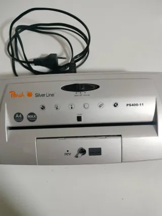 Trituradora de papel,CD's y tarjetas Peach Silver Line. - Modelo PS400-11. - Diseño en color plateado. En perfecto estado de funcionamiento