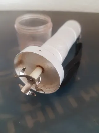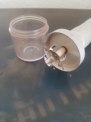 Trituradora de hierbas con diseño metálico y tapa de plástico. - Cuchillas afiladas para un triturado eficiente. - Tapa transparente para ver el contenido. - Compacta y fácil de usar.