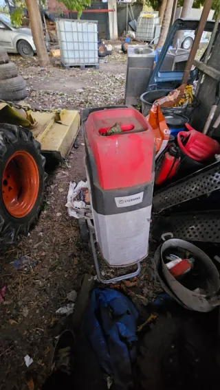 Trituradora de la marca Sterwins, ideal para restos de jardín. - Diseño en color rojo y gris. - Con ruedas para facilitar su movilidad.