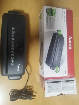 Trituradora de papel Hama Mini S6, ideal para uso doméstico o de oficina. - Nivel de seguridad P1. - Protección contra sobrecalentamiento. - Brazo extensible para cubos de papel. - Incluye manual de instrucciones.